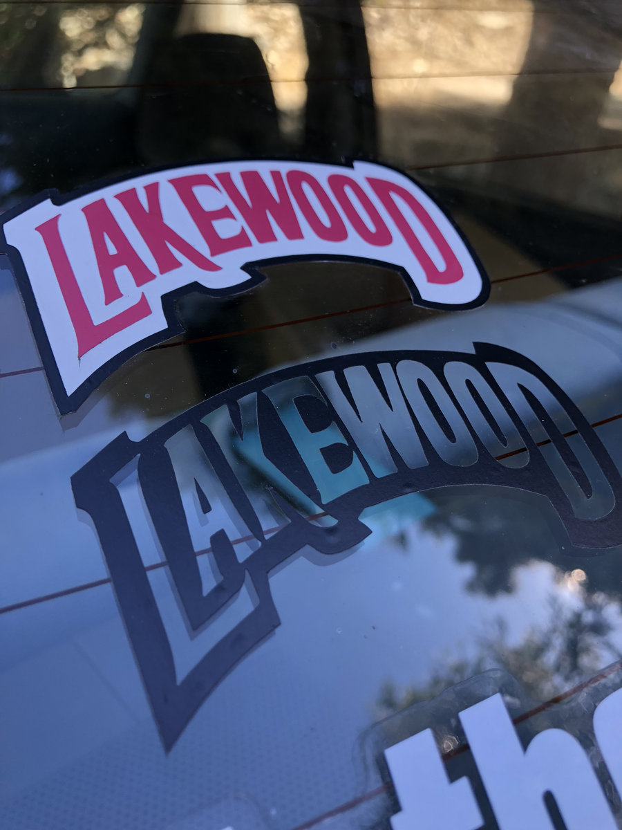 Lakewood merch is finally here! This limited run of vinyl stickers was handmade by my good friend, Jillesque, from Condina Records. Each order comes with one red "Backwoods" logo sticker as well as one black outlined press-n-peel decal.